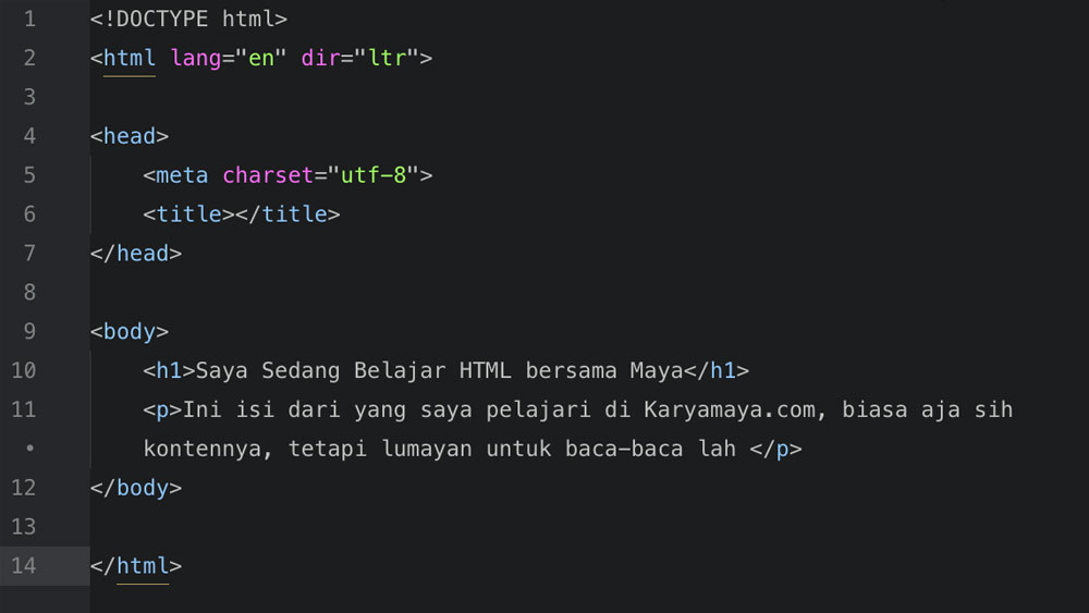 Ini tampilan sebuah file HTML jika kita menggunakan text editor sublime text 2